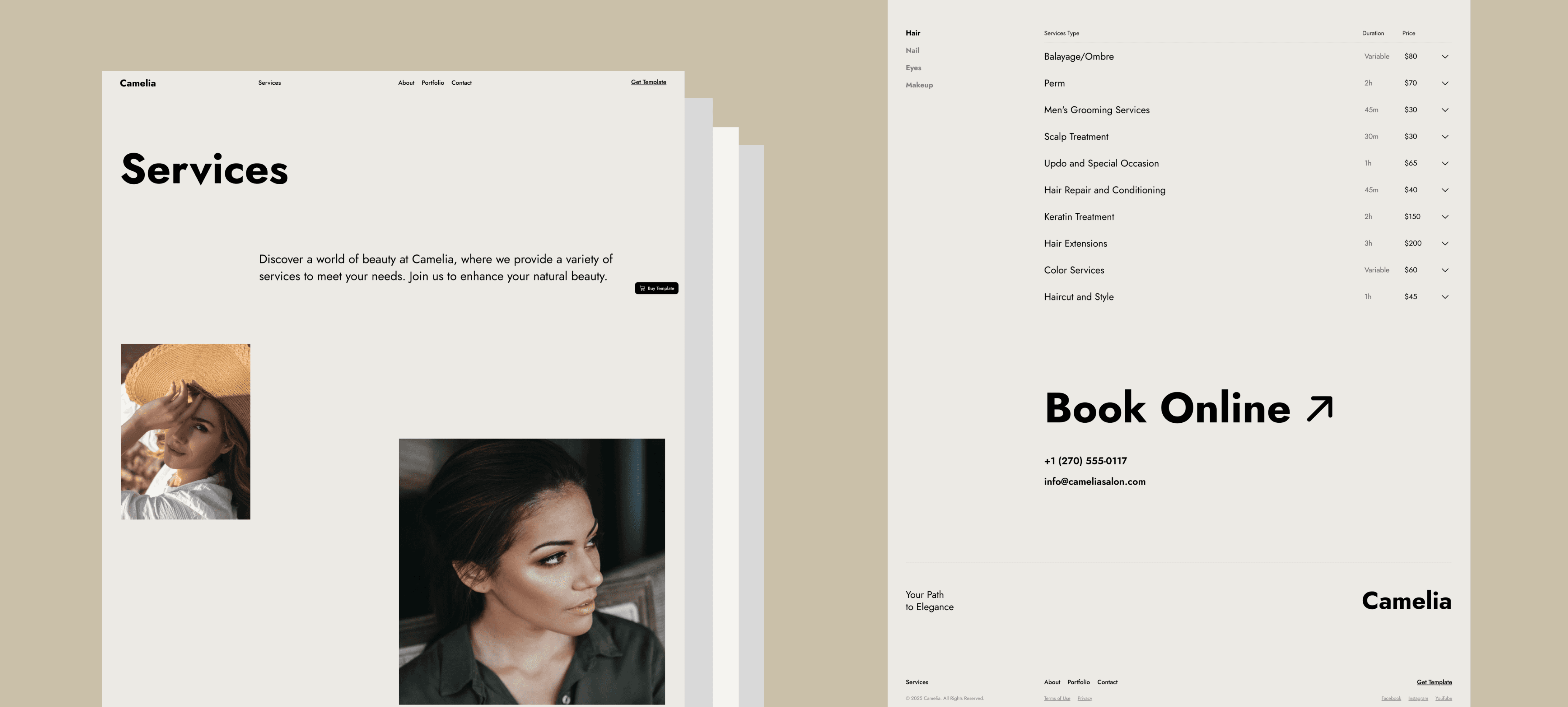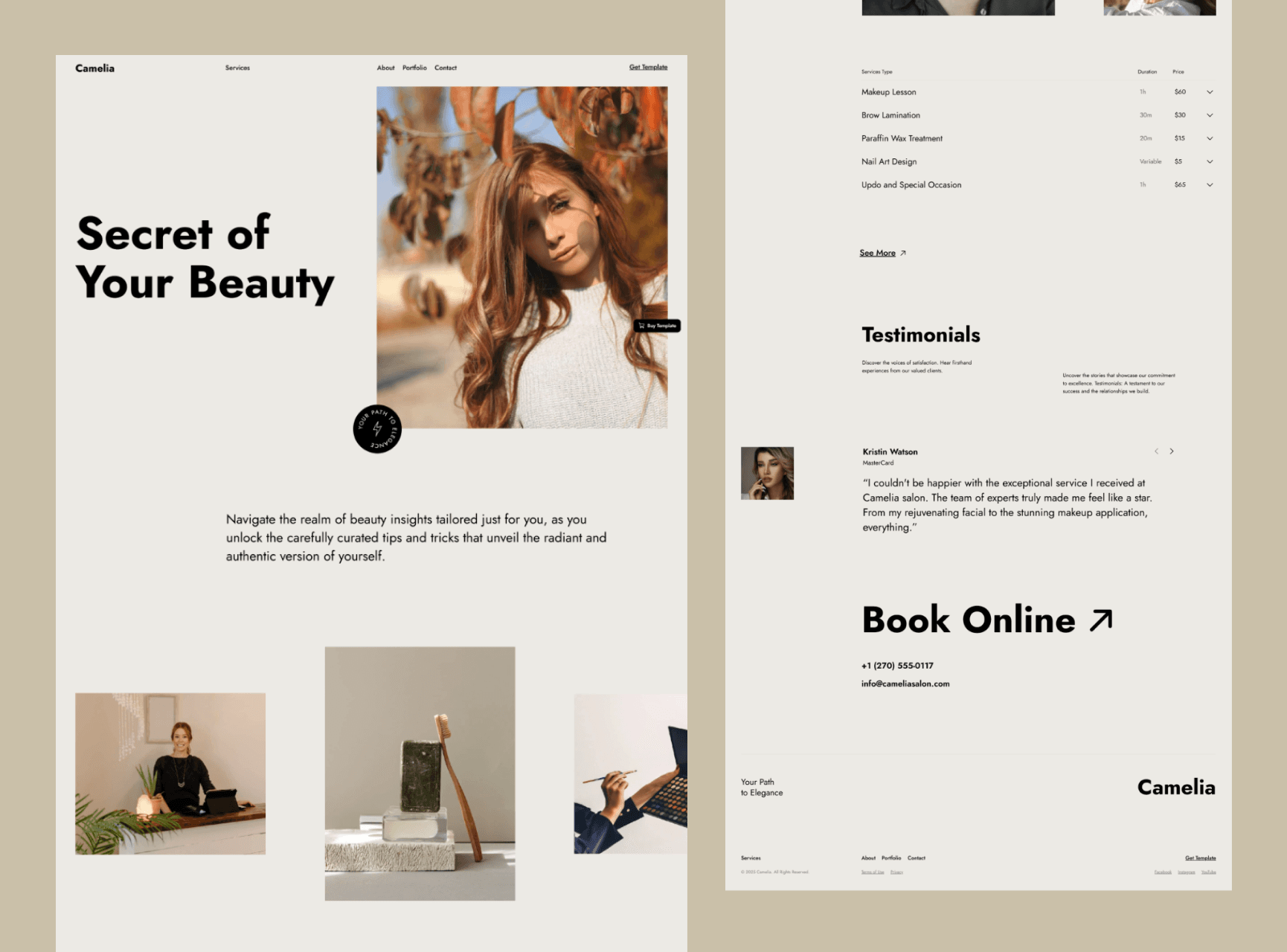 A refined design template for beauty professionals and salons, inspired by Swiss aesthetics with elegant typography and smooth animations.