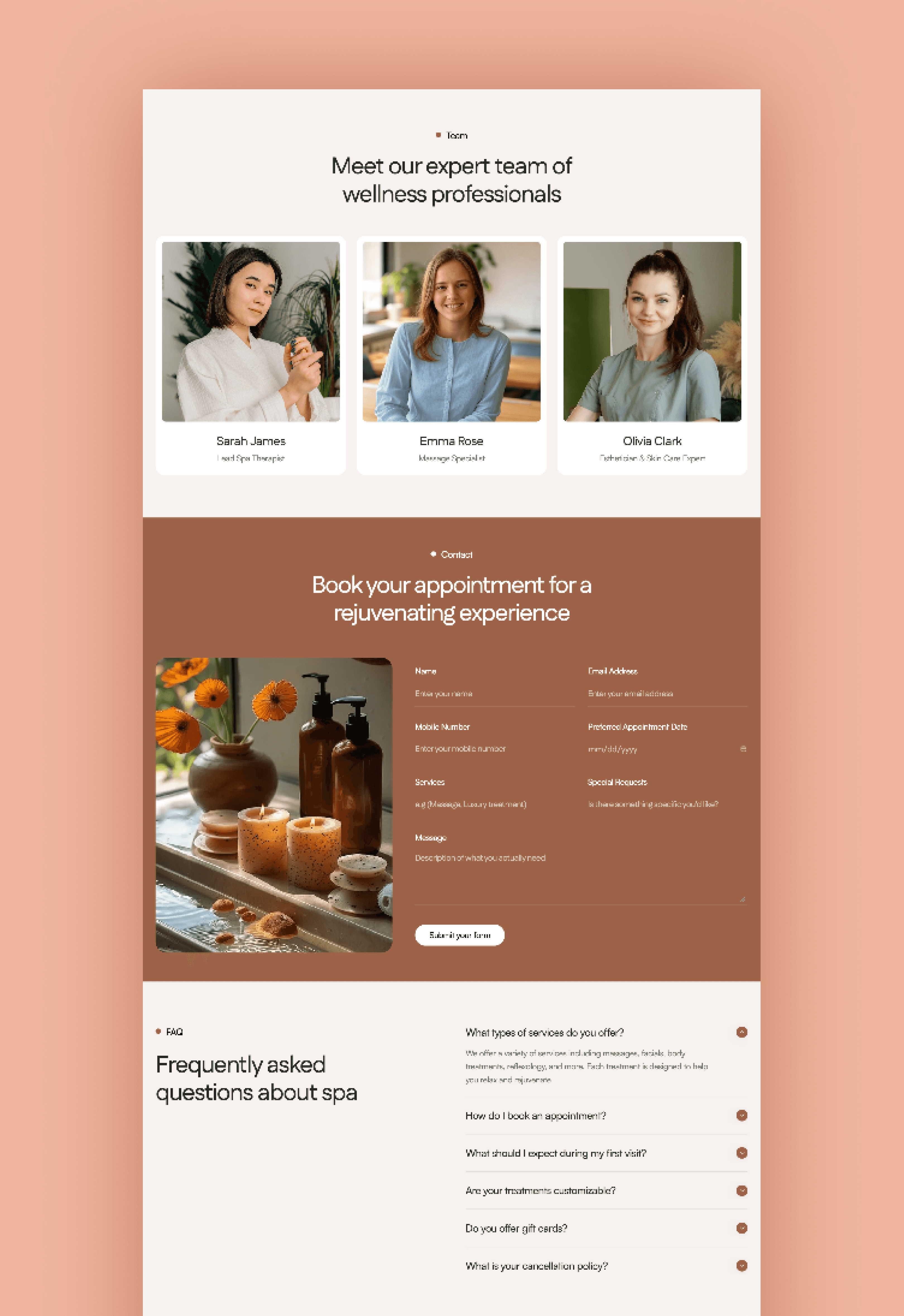 A refined design template for spas, delivering a luxurious, calming online experience with strong visual appeal and high conversion.